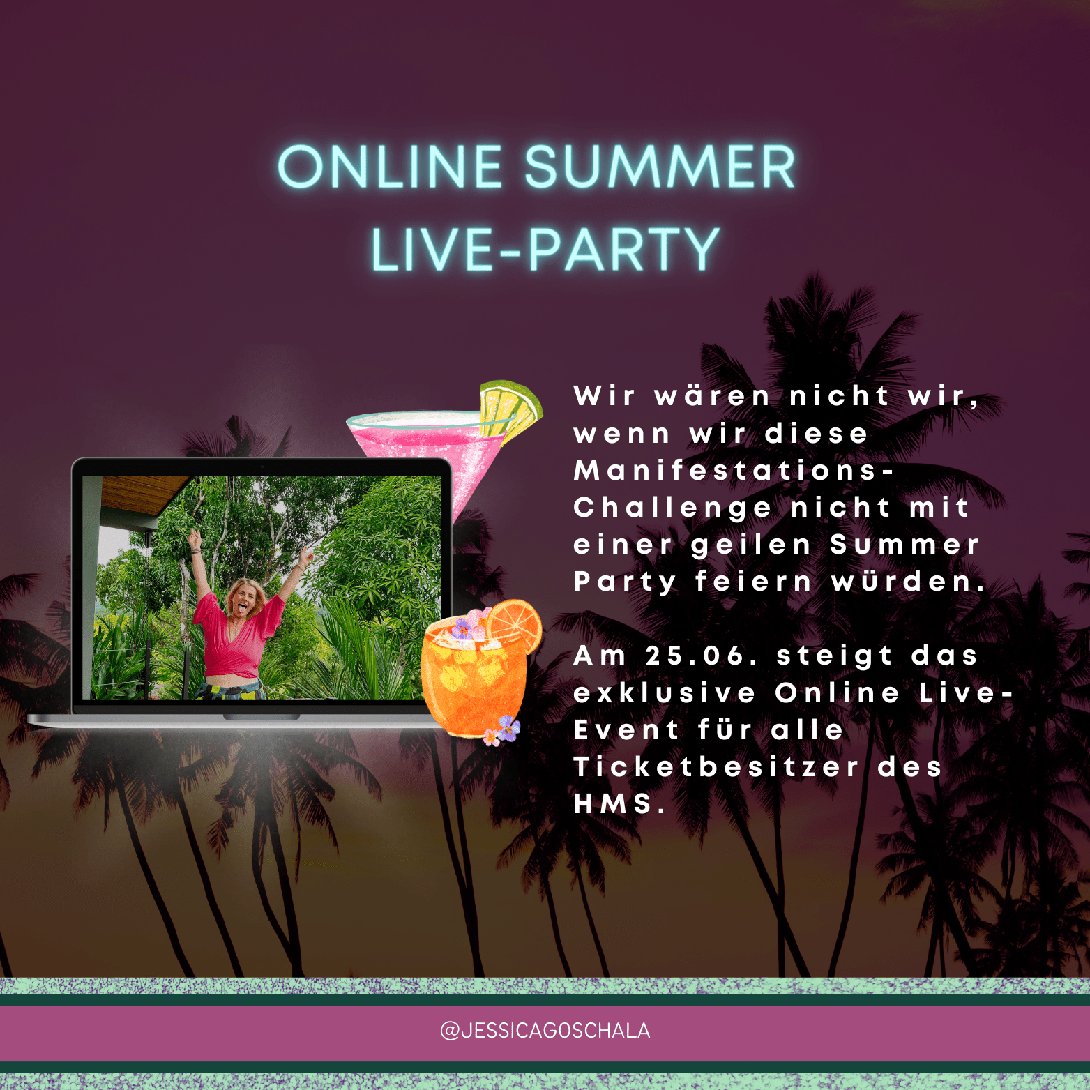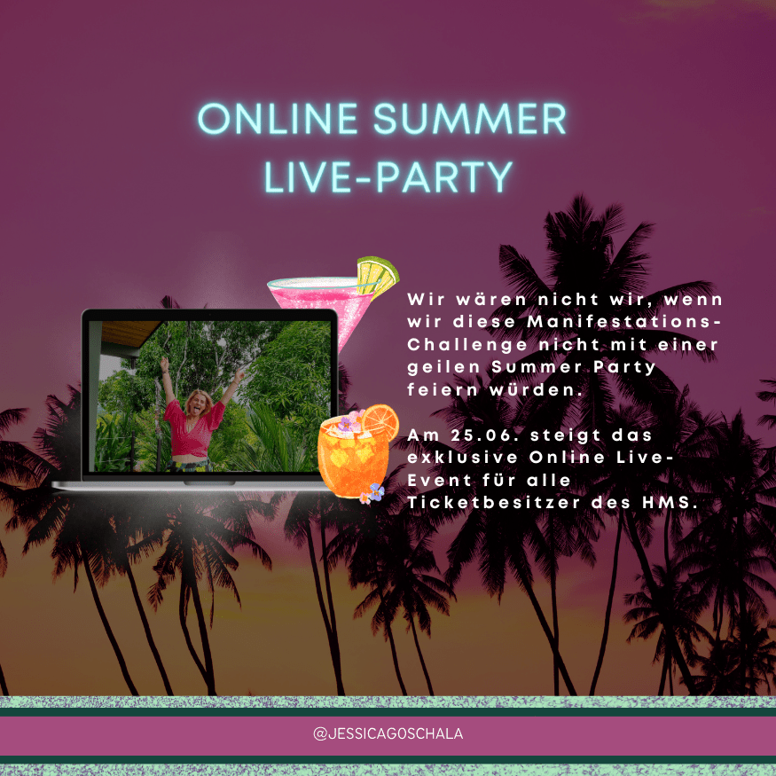 Abschließend findet am 25.06.2023 die HMS Summer Party statt. Wir empfehlen, dieses Live Online Event nicht zu verpassen, damit Du es mit Sicherheit schaffst, Dein Vision Board noch dieses Jahr zu manifestieren.